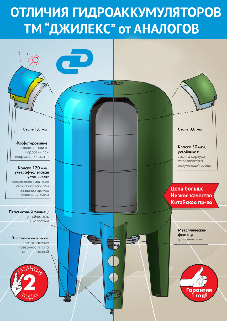 - Корпус мембранного бака выполнен из листовой стали толщиной 1.0 мм и покрыт антикоррозийной эмалью, которую наносят порошковым методом слоем не менее 120 мкн на промежуточный фосфотированный слой. Дополнительно слой эмали отражает солнечный ультрафиолет и не выгорает при долгой эксплуатации;