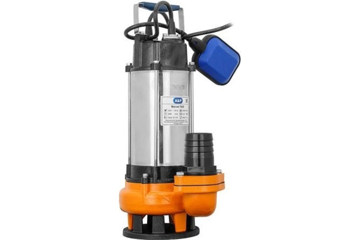 Погружной фекальный насос A&P Marvel 7000 - аппарат для выкачивания загрязненной воды с содержанием твердых частиц. Забор воды производится через всасывающие отверстия в нижней части насоса.