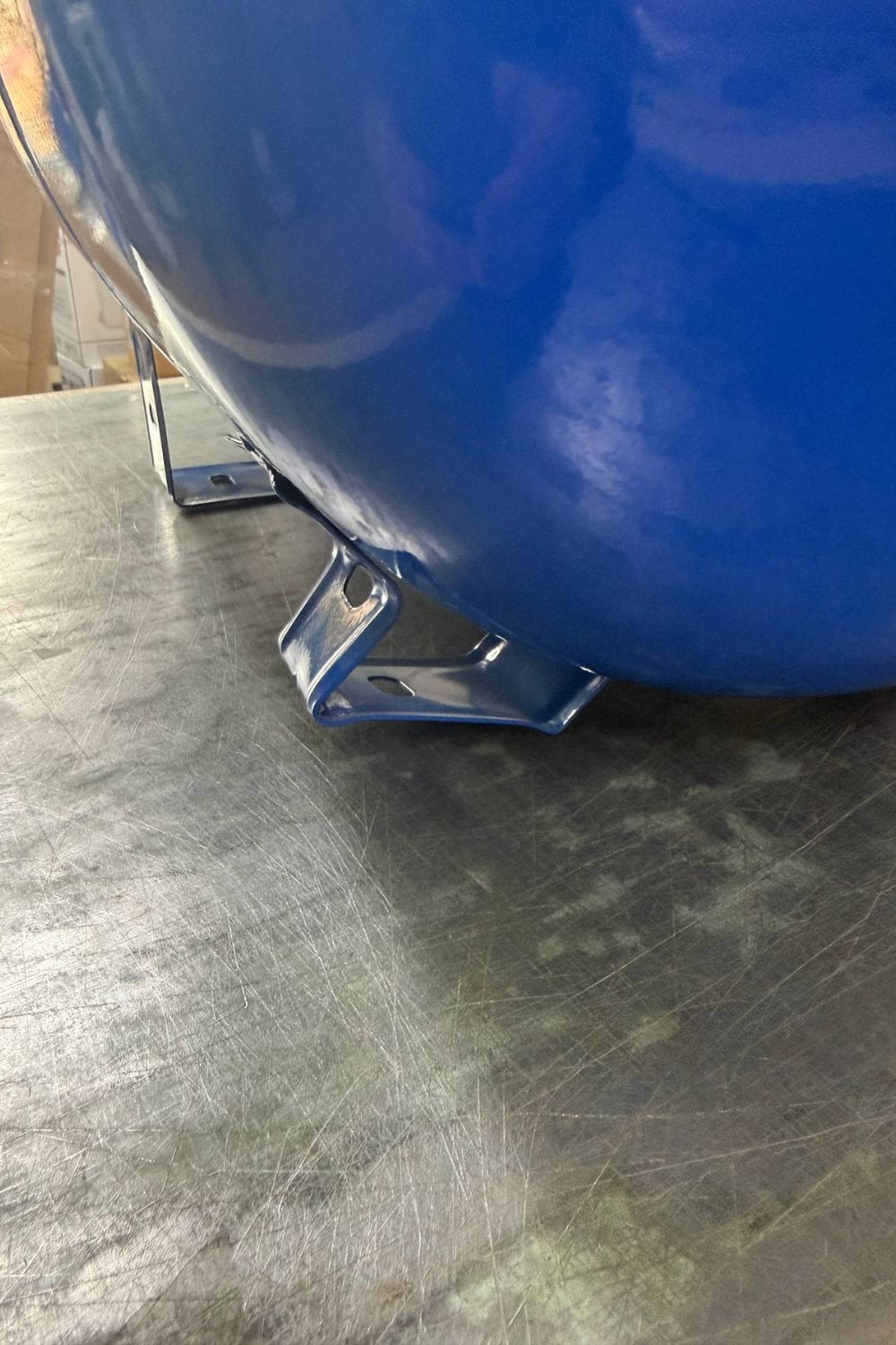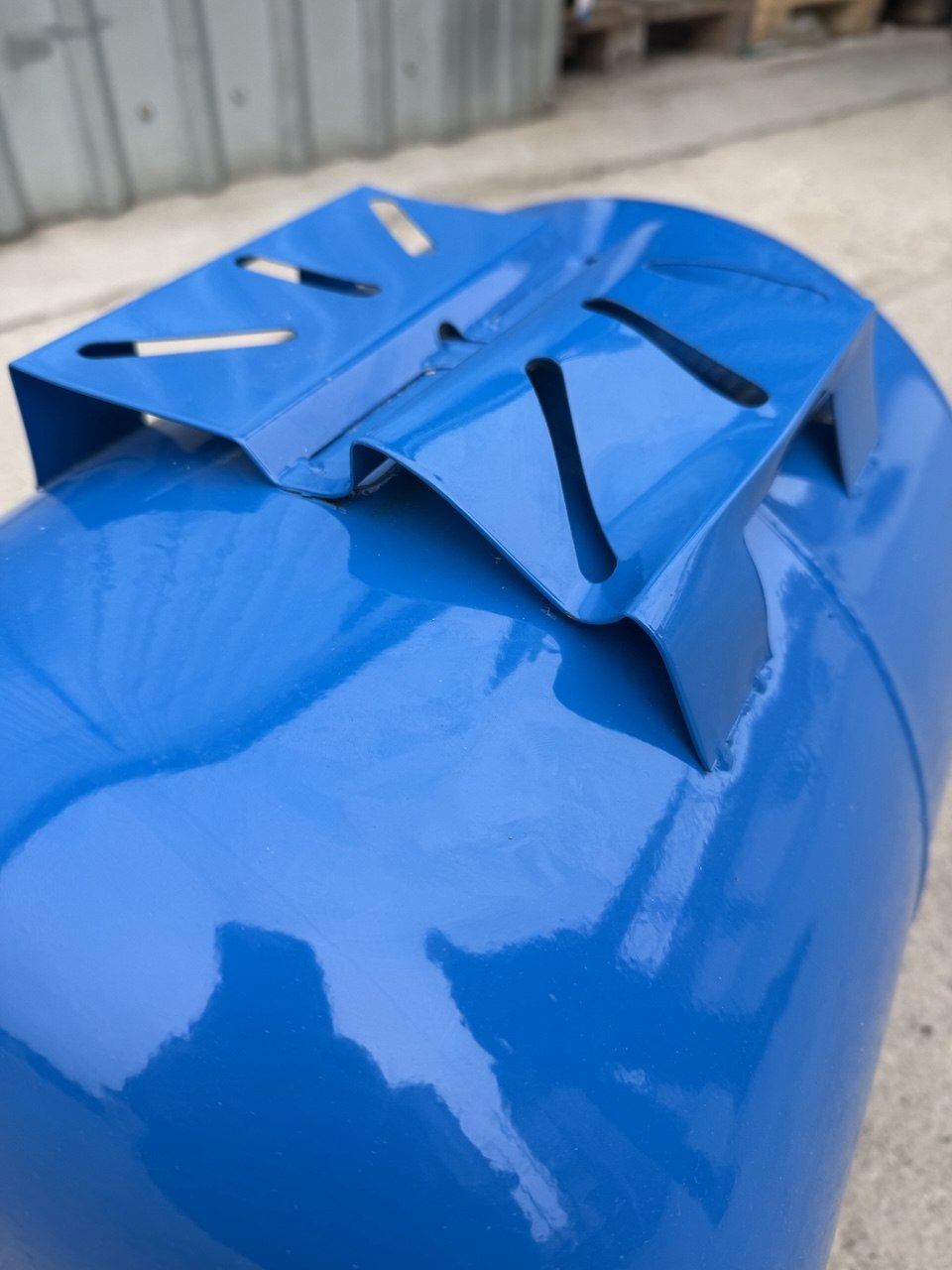 корпус бака (1) и опорные ножки (3) выполнены из стали и окрашен порошковым методом в голубой цвет с последующим оплавлением под большой температурой;