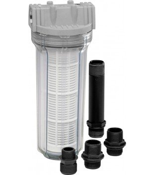 Предварительный фильтр AL-KO 250/1" освободит ваши насосы от угрозы засора при доставке воды в вашу систему водообеспечения и обеспечит подачу уже очищенной воды из кранов потребления до частиц в 60 мк. Имеет колбу под картридж на 31 см, переходные ниппеля – 2 размером 1"/1", один - 1"/3\4" и дополнительный патрубок с внешней резьбой на 1"/8".