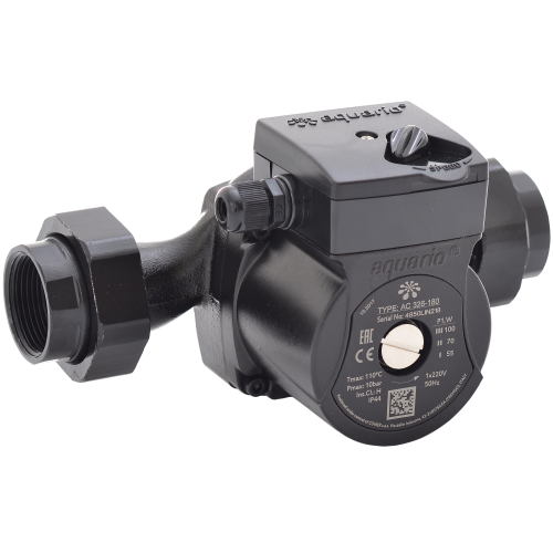 Циркуляционный насос с мокрым ротором и резьбовым соединением с трубопроводом отопления серии Aquario AC 326-180 отлично справляется с обеспечением циркуляции теплоносителя с температурой не более +110 С и с максимальным давлением до 10 атм в отопительных контурах систем радиаторного отопления и «теплый пол». Насос может работать бесперебойно в течении длительной эксплуатации. Имеет 3-х скоростное переключение мощности работы электродвигателя. Запитывается от бытовой однофазной сети 220 +6% -10%/50 Гц.