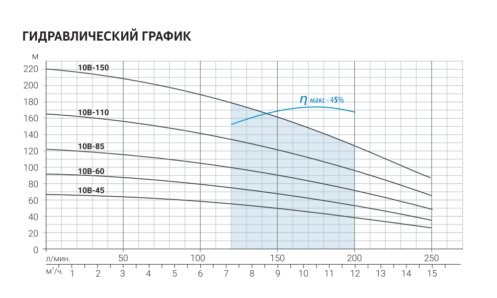 - Максимальное содержание песка в перекачиваемой воде: 180 гр./м3 воды
