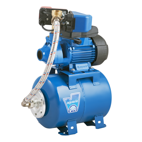 Автоматическая насосная станция с одноступенчатым вихревым поверхностным насосом с минимальными зазорами рабочего колеса, воздушным охлаждением электродвигателя и гидробаком на 8 литров Aquario AUTO ADB-35(8L) (H) способна в автоматическом режиме перекачивать чистую пресную воду с постоянными параметрами давления с 50 г/куб. м, с твердыми частицами размером до 0.1 мм с глубины не более 7 метров в целях решения задач индивидуального водообеспечения. Запитывается от бытовой переменной однофазной сети 220+ 6%-10% В/50 Гц.