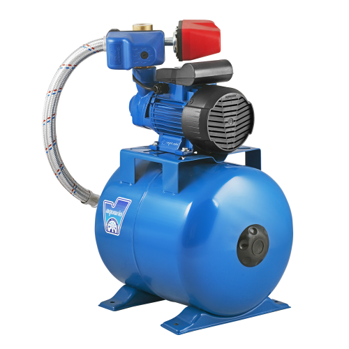 Корпус насоса выполнен из чугуна с латунными вставками с эмалевым антикоррозийным покрытием внутренней поверхности, медная обмотка двигателя, сердечники статора и ротора – из холоднокатаной стали, вал – из нержавейки AISI 304, рабочее колесо – из латуни, корпус гидроаккумулятора объемом на 18 литров – из стали с антикоррозийным покрытием эмалью, мембрана бака – из пищевого этиленпропиленового каучука EPDM: