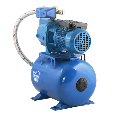 В конструкции станции: реле давления с заводскими настройками давления включения насоса 1.5 атм+/-10%, выключения – 2.8 атм +/-10%, пятипозиционного соединительного патрубка, механического гидроманометра и объемного гидроаккумулятора с соединительным шлангом высокого давления.