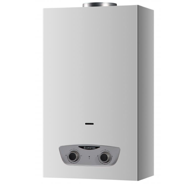 Вертикальный настенный газовый проточный водонагреватель с прямоугольным плоским корпусом и нижним подводом воды и газа ARISTON FAST R 10 служит для нагрева проточной воды из магистрали холодного водоснабжения для бытовых нужд в жилых и производственных строениях. В данной модели применяется авторозжиг от элементов питания постоянного тока 1.5 В, которые входят в комплект поставки.