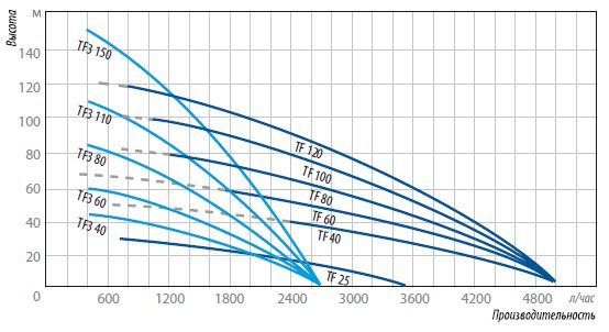 Превосходные производительные и напорные характеристики установки:
