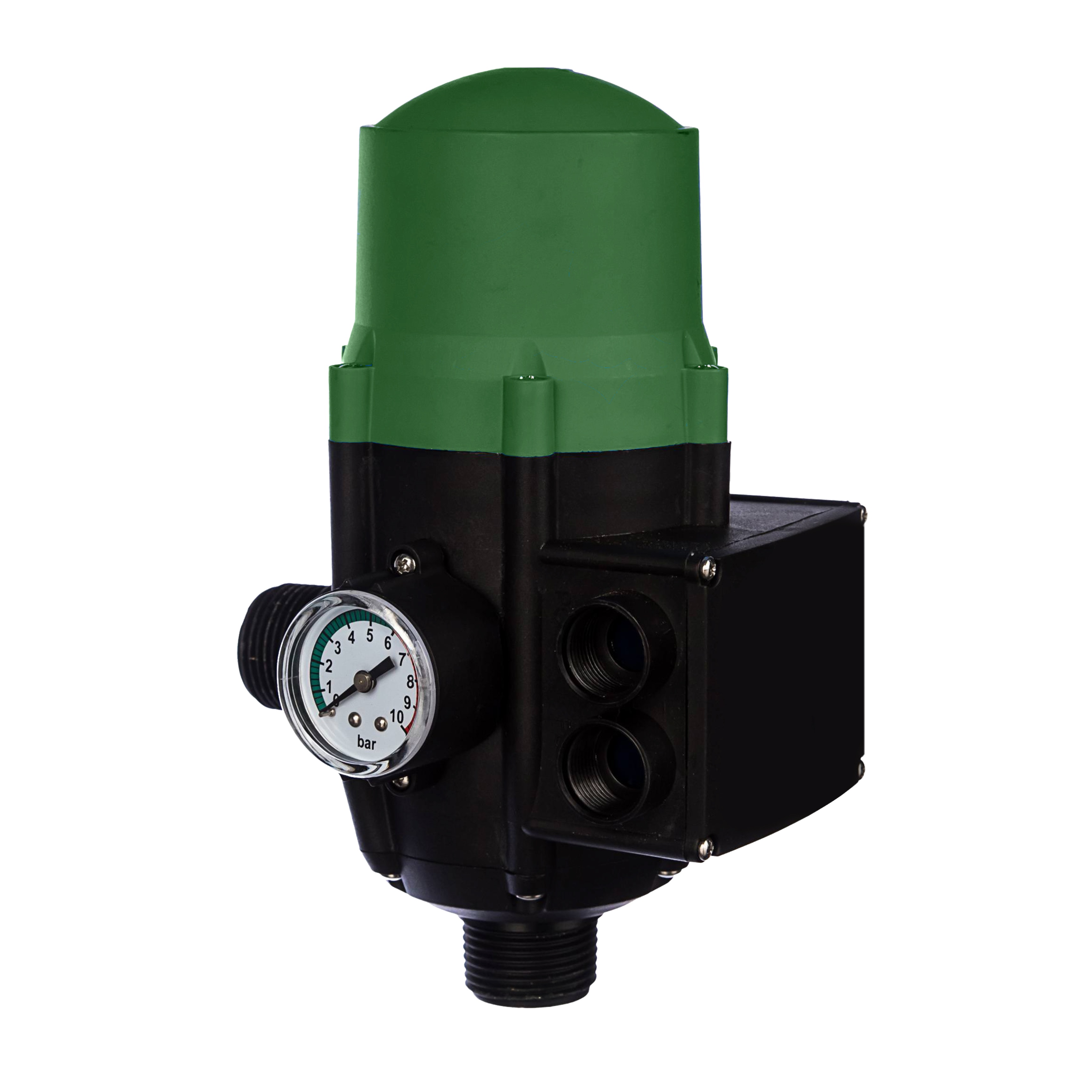 Высота столба воды между насосом и самой высокой точкой использования не должна превышать 15 м, а насос должен создавать минимальное давление 2,5 бар. Корректировка начального давления осуществляется винтом на верхней части узла управления. Посмотрите на давление на манометре при запуске насоса и поверните винт в нужную сторону (регулировка давления должна выполняться специалистом. Согласно стандартам начальное давления должно быть на 0,2 бар выше манометрического, а давление насоса на 0,8 бар выше, чем корректируемое. Эта операция корректирует только начальное давление, а не рабочее давление, которое зависит только от производительности насоса. Для упрощения корректировки следует открыть кран установки, что уменьшит внутреннее давление в узле управления.