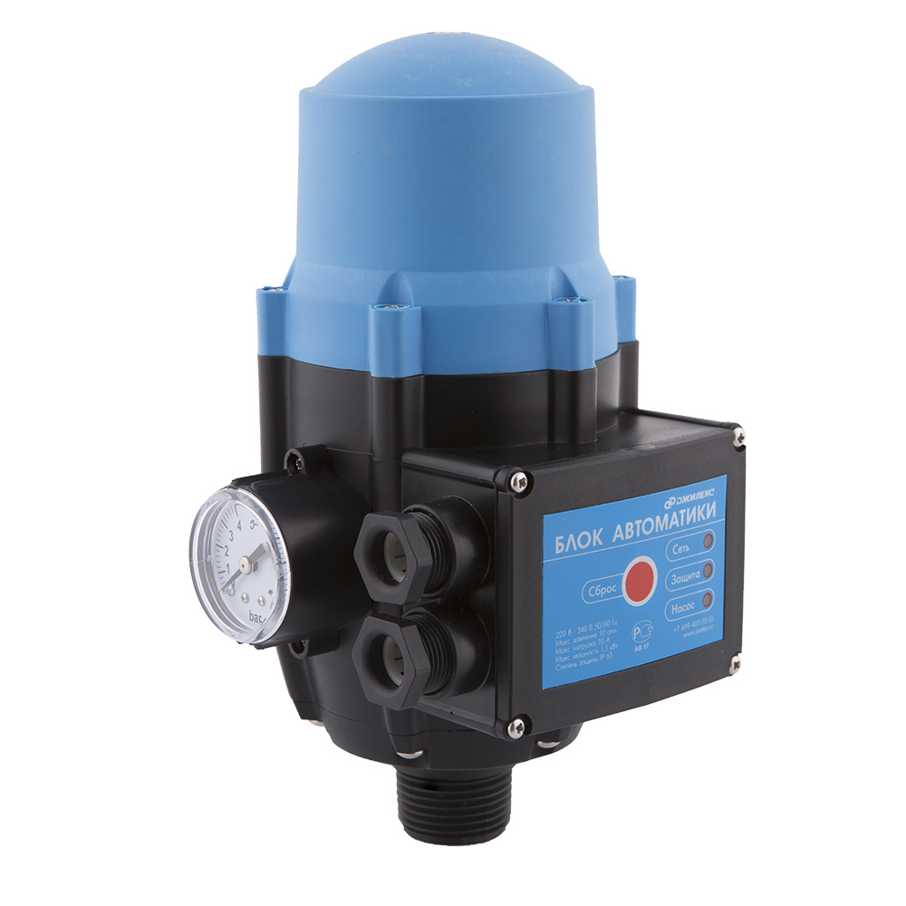 Блок автоматики Джилекс предназначен для автоматизации работы электронасоса, защищает его от работы без воды (сухого хода). Обеспечивает запуск при понижении давления (открытие кранов) или остановку при отсутствии водного потока в системе водоснабжения (закрытие кранов).