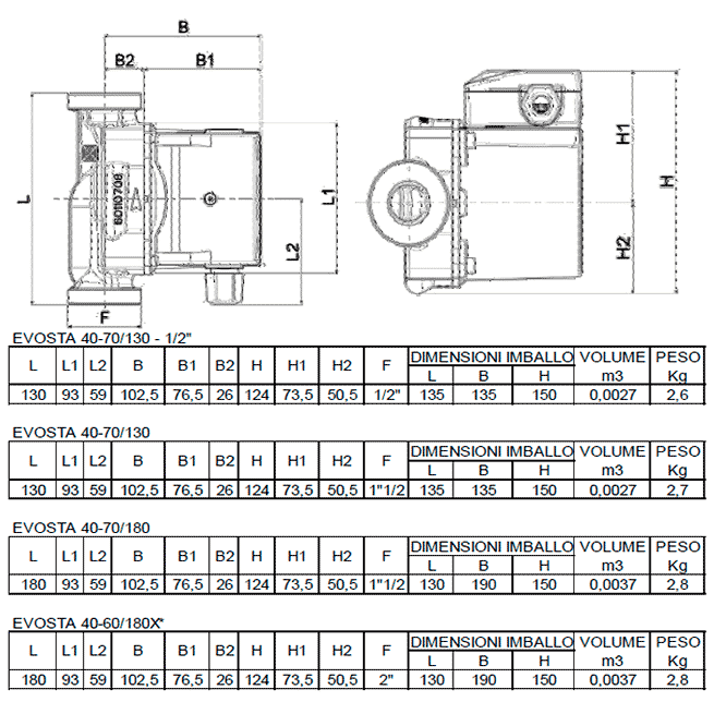 Циркуляционный насос DAB EVOSTA 40-70/130 1/2"
