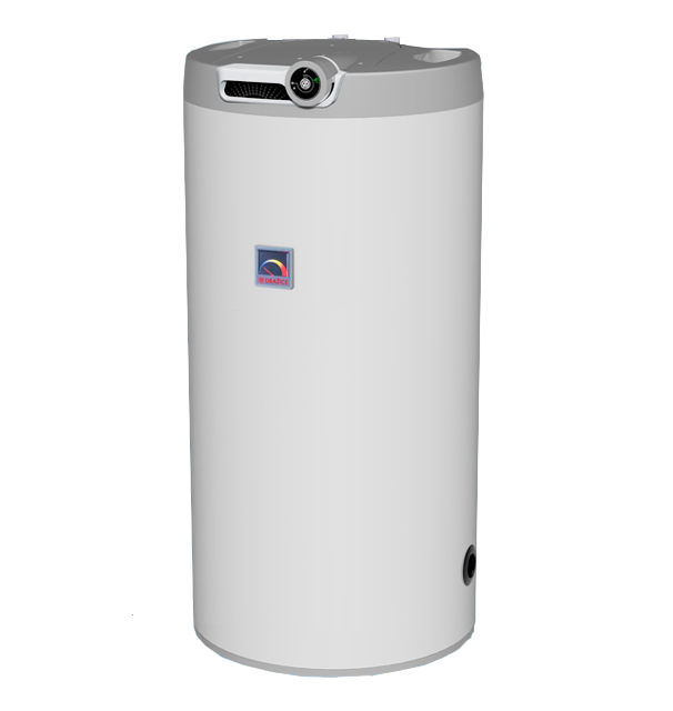 Drazice OKC 100 NTR- напольный водонагреватель в круглом исполнении с одним теплообменником и верхним подводом воды. Подключение теплообменника сбоку. Возможность установки электротена. Объём (л): 95.