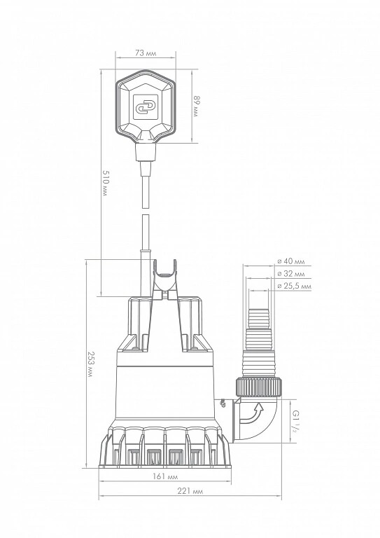 - Благодаря поплавковому выключателю не нужно постоянно следить за работой насоса. Он самостоятельно отключится при снижении воды до определенного уровня.