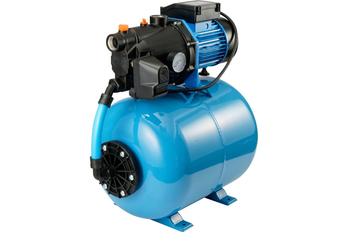 Насосная станция на основе поверхностного центробежного насоса Джилекс ДЖАМБО 70/50 П-50 (2.0) создана для автоматического обеспечения жилых и производственных помещений холодной чистой водой без механических и волокнистых примесей из колодцев, открытых водоемов, для полива садов и огородов, минимизации условий возникновения гидроударов при включении/выключении агрегата, повышения давления в магистралях с низким напором.