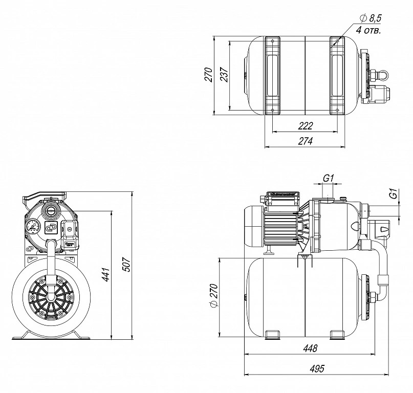 - насосы надежно защищены от «сухого хода», перегрузки мотора, перепадов напряжения в сети и по предельному току запуска;