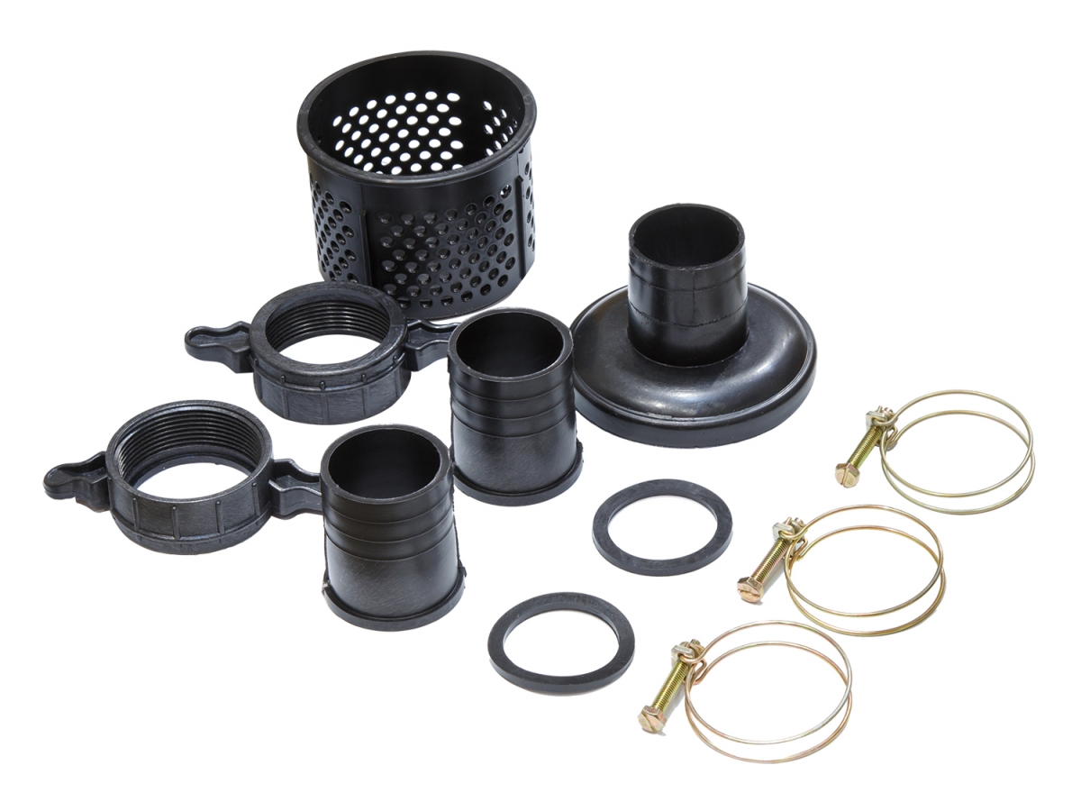 - всасывание и подача воды производятся через гибкие шланги диаметром 2 дюйма, которые крепятся к соответствующим патрубкам с помощью хомутов из комплекта (шланги не входят в комплект поставки);