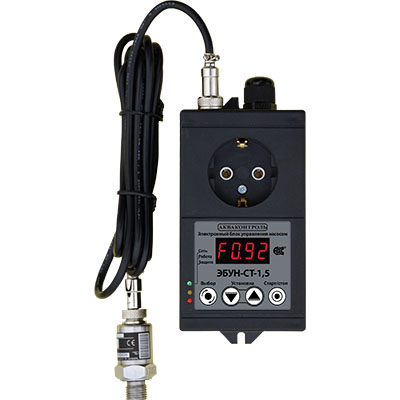 Меню ЭБУН-Ст-1,5 полностью русифицировано. Настройки сохраняются даже при перебоях с электропитанием. В комплекте идёт выносной датчик давления с кабелем длиной 3м.