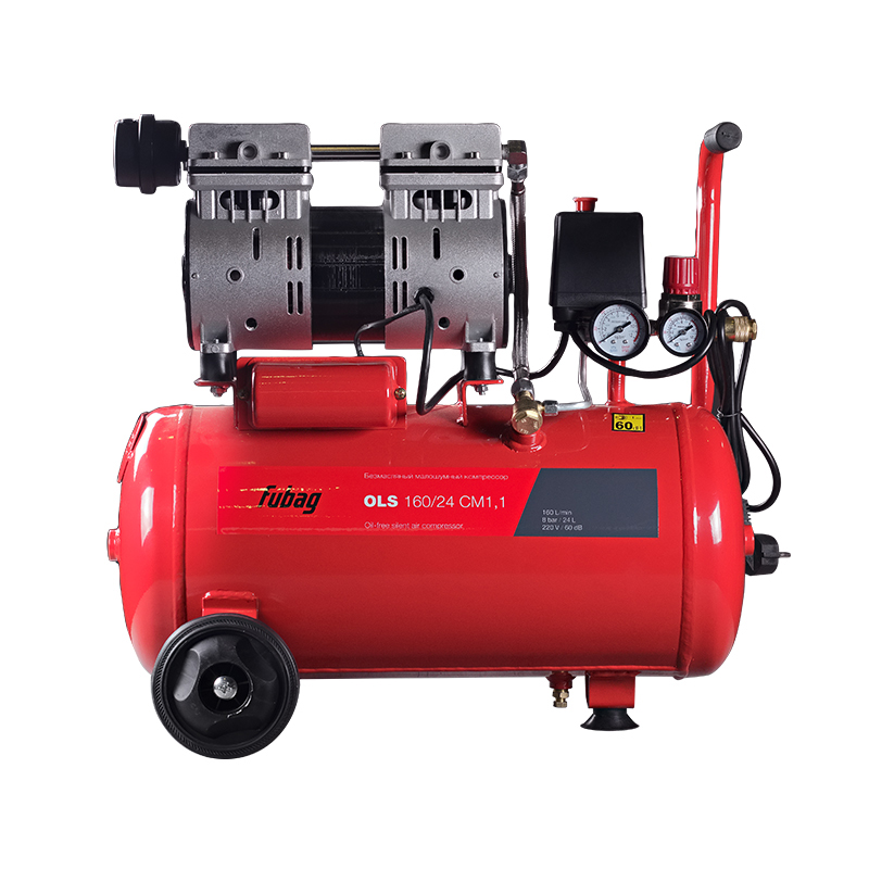 Малошумный компрессор OLS 160/24 CM1,1 оборудован безмасляной компрессорной головкой, которая обеспечивает получение чистого сжатого воздуха без примесей масла. Низкая скорость вращения ротора двигателя (1400 об/мин) гарантирует пониженный уровень шума (60 дБ против 80+ на обычных безмасляных компрессорах) и увеличенный ресурс работы.