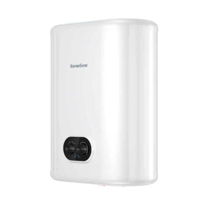 Накопительный водонагреватель состоит из корпуса, нагревательного элемента, термостата, предохранительного клапана и защитной крышки с элементами управления. Внутри водонагревателя Garanterm Flat 30 V расположен бак, который теплоизолирован пенополиуретаном.