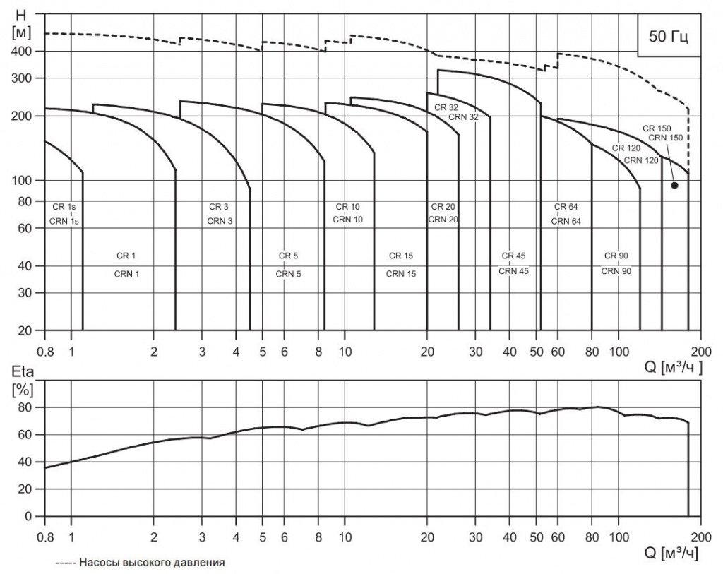 | Серия CR 150 (Q = 75..180 м³/ч) | ||||
