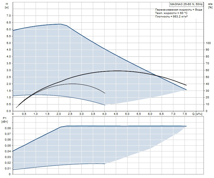 Рабочий диапазон применения насосов Grundfos MAGNA3: