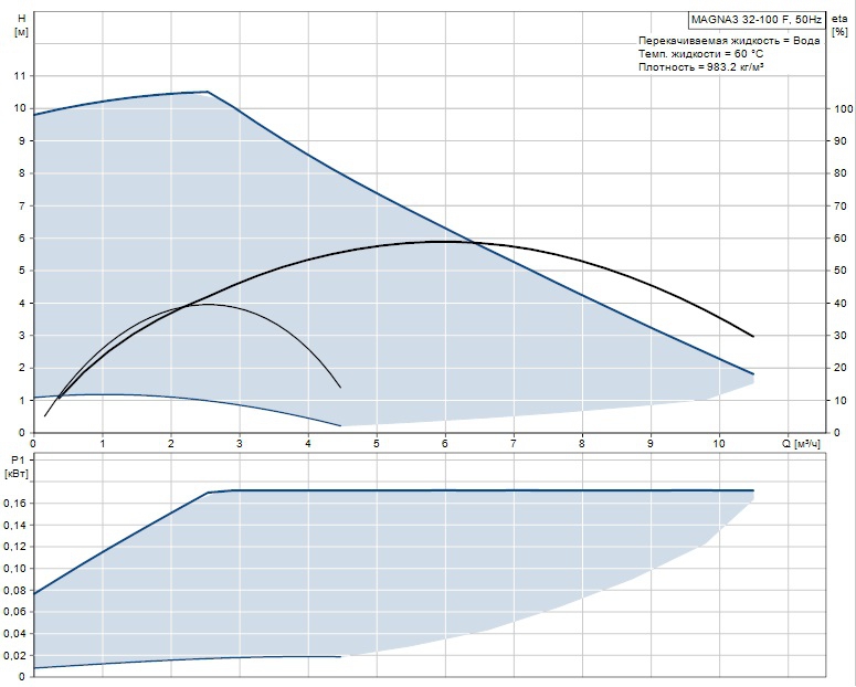 Рабочий диапазон применения насосов Grundfos MAGNA3:
