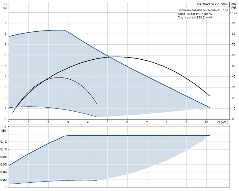 Рабочий диапазон применения насосов Grundfos MAGNA3: