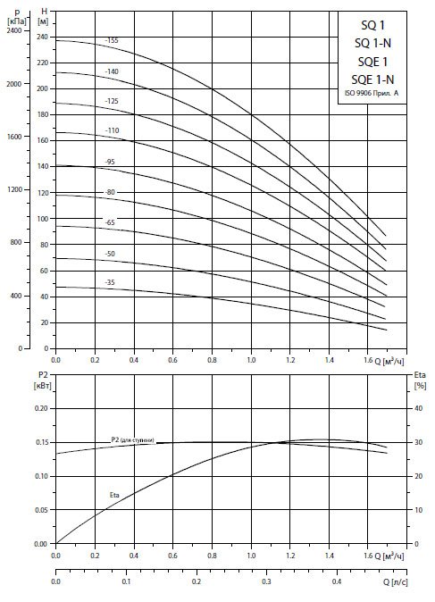 НАПОРНЫЕ ХАРАКТЕРИСТИКИ НАСОСА Grundfos SQ 1-50