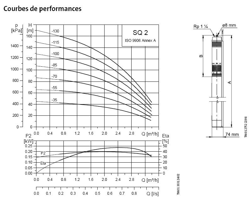 ↓ТЕХНИЧЕСКИЕ ХАРАКТЕРИСТИКИ НАСОСА Grundfos SQ 2-100 ↓