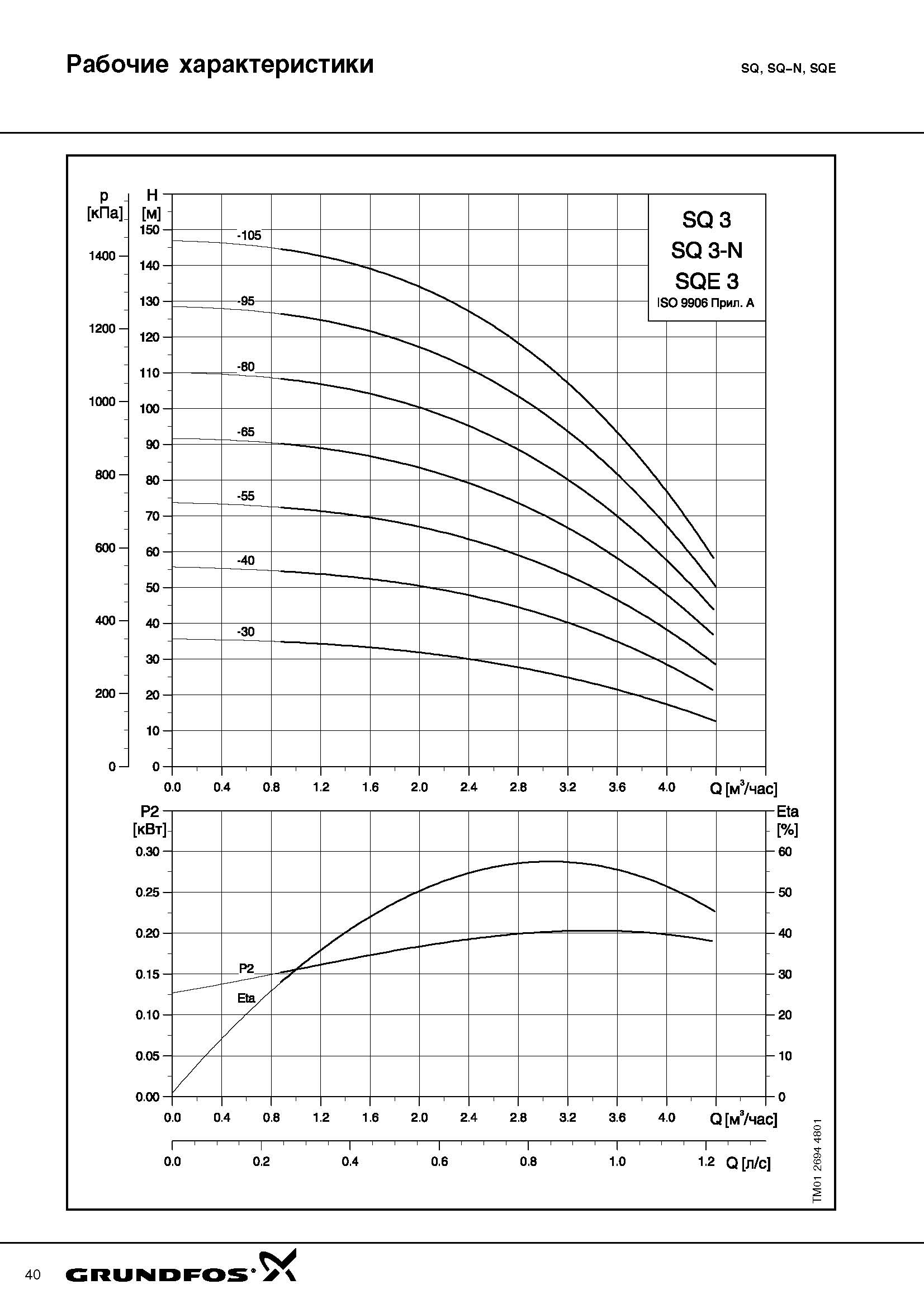↓ТЕХНИЧЕСКИЕ ХАРАКТЕРИСТИКИ НАСОСА Grundfos SQ 3-95 ↓