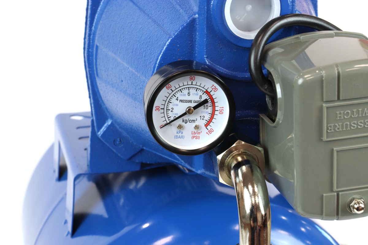- Встроенный манометр позволяет контролировать давление в насосе.