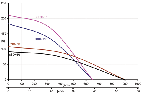 Многоступенчатые центробежные скважинные насосы IBO 6SD служат для подачи чистой воды в промышленных объемах с мощным электромотором, работающем от сети 380 В, аналог насосов ЭЦВ.