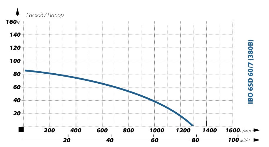 Глубинный скважинный многоступенчатый центробежный насос IBO 6SD 60/7 служит для перекачки чистой воды без механических и волокнистых вкраплений из узких и глубоких колодцев, скважин и других емкостей в промышленном объеме, чему способствует электромотор большой мощности и многоступенчатый привод рабочего колеса. Работает от бытовой сети 380-400 В/50 Гц.