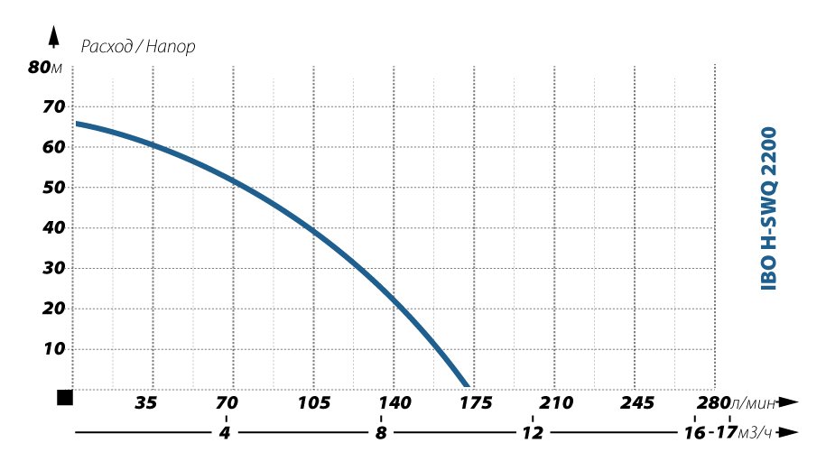 Погружной насос дренажного типа с поплавковым выключателем IBO H-SWQ 2200 имеет очень высокие показатели по напору при перекачке чистой и слегка загрязненной воды с частицами до 1 мм, но без песчаных вкраплений. Насос используют для откачки воды из глубоких и узких колодцев от воды с подачей влаги на нужды полива и орошения. Работает от бытовой сети однофазного переменного тока 220 В/ 50 Гц.