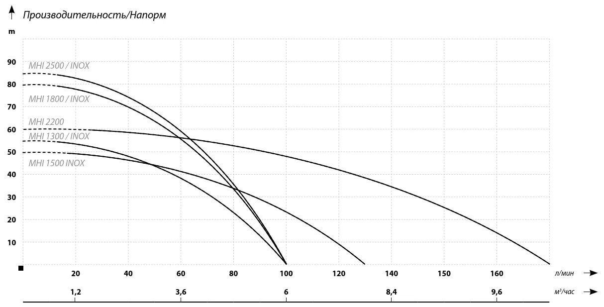 собственных водозаборов и для повышения давления. В насосах используется система всасывания Вентури для поддержки всасывания устройства. Насосы MHI доступны в двух вариантах: с лопастными колесами из нержавеющей стали (версия INOX) или с лопастными колесами из норила. Все насосы имеют корпус, выполненный из нержавеющей стали. Тихая работа насосов позволяет устанавливать их в доме. Насосы оснащены тепловой защитой, установленной в обмотке двигателя.