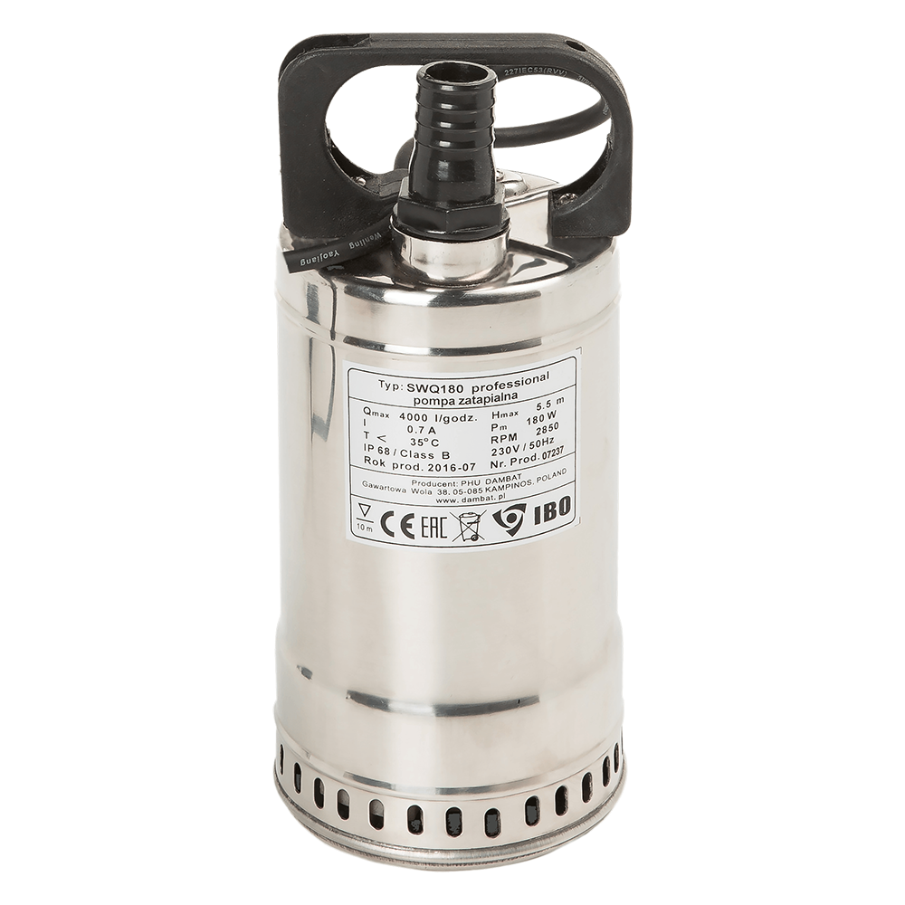 Погружной дренажный насос с поплавковым выключателем IBO SWQ 180 служит для откачки чистой и немного загрязненной воды из затопляемых помещений во время паводков, доставки воды из узких входных приямков искусственных емкостей, при чистке бассейнов и осушении рукотворных фонтанов и частных прудов для разведения рыб. Работает от бытовой однофазной сети переменного тока 220 В/ 50 Гц.