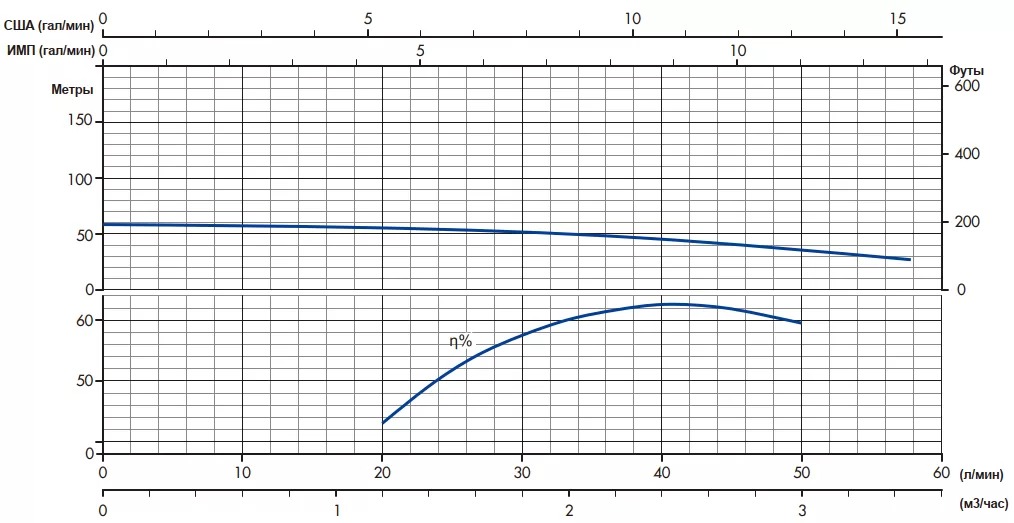 Диаметр насоса, мм (дюймов)