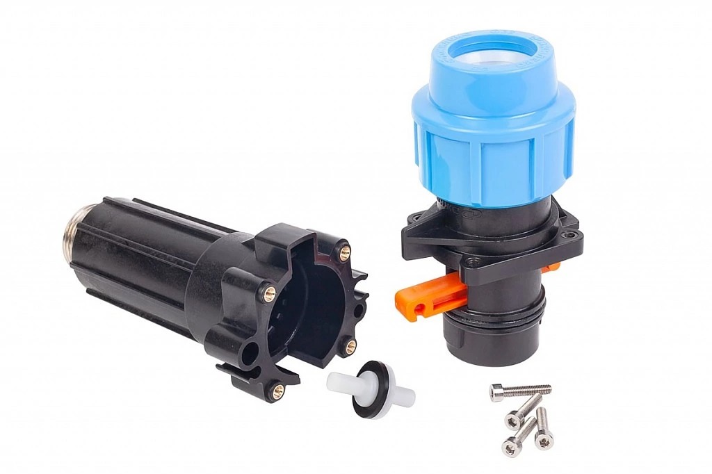 - Сливной клапан разработан специально для монтажа на скважинный адаптер, также можно установить в разрез напорной трубы 32мм.