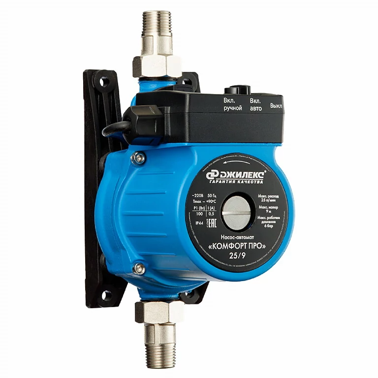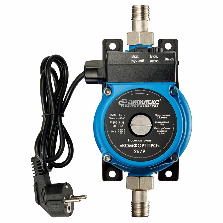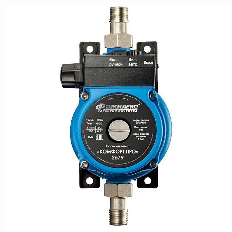 Расходно-напорные характеристики насосов-автоматов зафиксированы в названии с помощью буквенно-цифрового индекса. В названии модели «КОМФОРТ ПРО» 25/9:- «КОМФОРТ ПРО» — название серии.