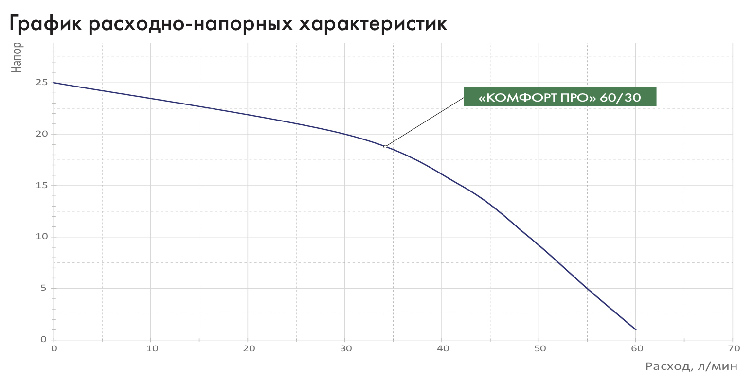 Данный тип насосов подбирается исходя из требований по производительности насоса, а так же расстояний: от источника до насоса и от насоса до точки водоразбора. Полученные данные накладываются на график расходно-напорных характеристик.