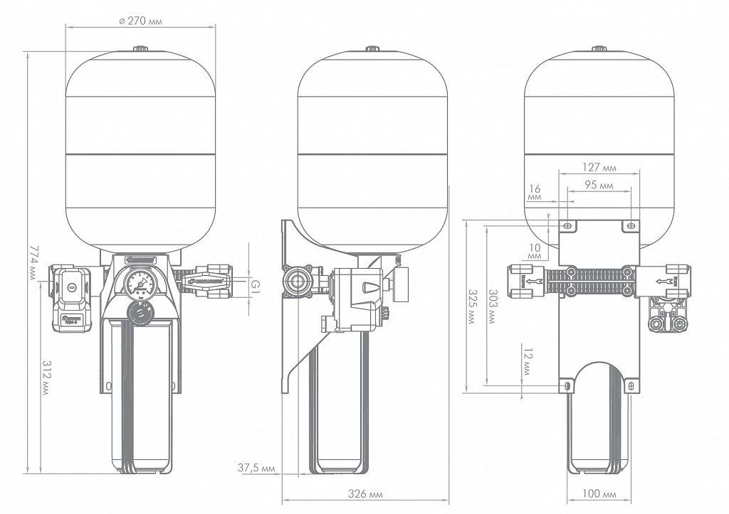 Содержит необходимый и достаточный набор элементов системы водоснабжения в одном изделии.