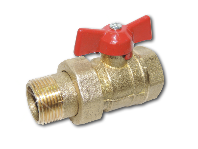 Шаровый кран полнопроходной с американкой (сгоном) диаметром 25 мм (1 дюйма). Ручка-бабочка. Материал: латунь.