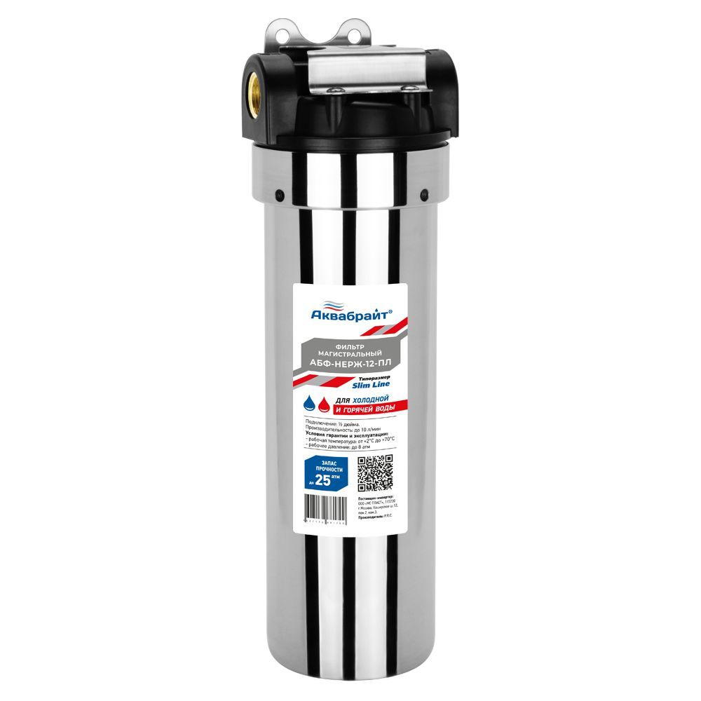 Магистральный фильтр АКВАБРАЙТ модель АБФ-НЕРЖ-12-ПЛ выполнен из НЕРЖАВЕЮЩЕЙ СТАЛИ с пластиковой крышкой, рекомендуется для предварительной очистки холодной и ГОРЯЧЕЙ воды. Эффективно задерживает различные примеси.