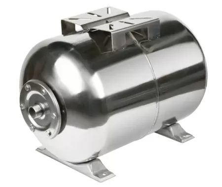 Гидроаккумулятор для воды MAXPUMP H-80 горизонтального исполнения предназначен для систем холодного водоснабжения. Гидроаккумулятор служит для накапливания запаса воды объемом до 80 литров, снижения вероятности возникновения гидравлических ударов в системе, а также сокращения количества пусков насоса, тем самым продлевая срок службы насоса. Конструкция гидроаккумулятора представляет собой стальной корпус, окрашенный в синий цвет, со сменной мембранной, изготовленной из высококачественного материала EPDM, опорными ножками у основания бака, воздушным клапаном и площадкой для установки насоса. Горизонтальные гидроаккумуляторы, благодаря установочной площадке, расположенной на поверхности бака, могут использоваться с поверхностными насосами. Мембранные баки MAXPUMP оснащаются рабочим штуцером диаметром 1". Рекомендуемый диапазон температур составляет от 0 до 45 C°, исходное давление 1.5 атм, максимальное давление до 8 атм.