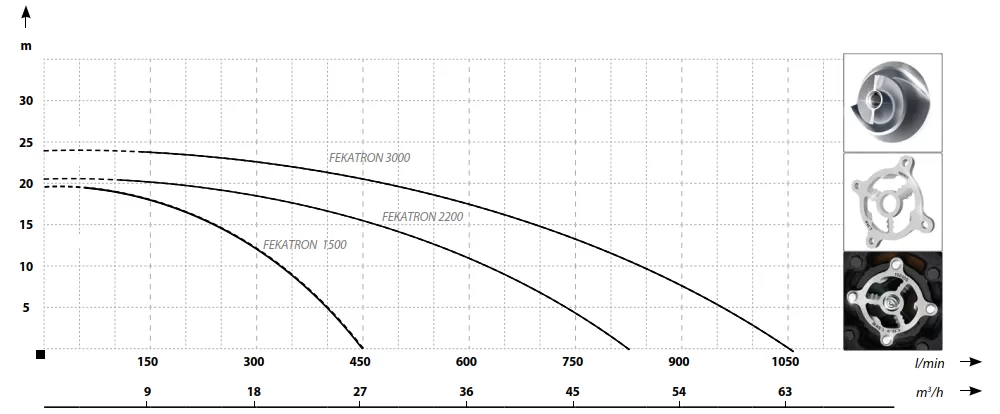 Погружной фекальный насос MAXPUMP FEKATRON 3000 широко используется в отводе сточных вод, канализационных системах и частных строениях. У насоса корпус и крыльчатка изготовлены из чугуна, что говорит о высокой прочности. Крыльчатка насоса MAXPUMP FEKATRON 3000 разработана для достижения большого напора и высокой производительности. В насосе установлен профессиональный измельчитель. Производительность насоса в максимальном значении 63 м³/час, а напор в максимальной точке 24 м. Насос работает на базе трехфазного двигателя мощностью 3000 Вт, 2900 об/мин, 380 В/50 Гц, IP 68.