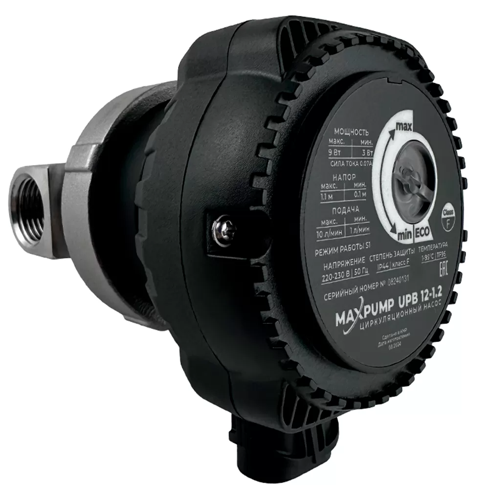 MAXPUMP UPB 12-1.2 оснащен поворотной ручкой для настройки мощности. Вы можете выбрать нужный режим работы насоса вручную или включить автоматический режим ECO, который обеспечивает оптимальный баланс между производительностью и экономией.