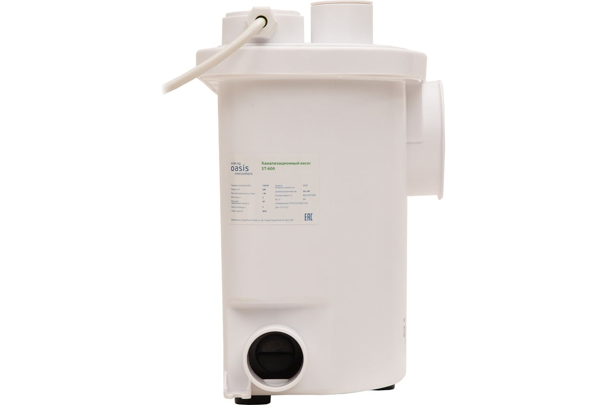 Канализационный насос Oasis ST-600 с измельчителем предназначен для обслуживания отдельного туалета, а также дополнительного умывальника, душа или биде. Прибор используется в тех случаях, когда нет возможности присоединиться к канализации здания, и отвод стоков должен производиться принудительно с преодолением подъёма.