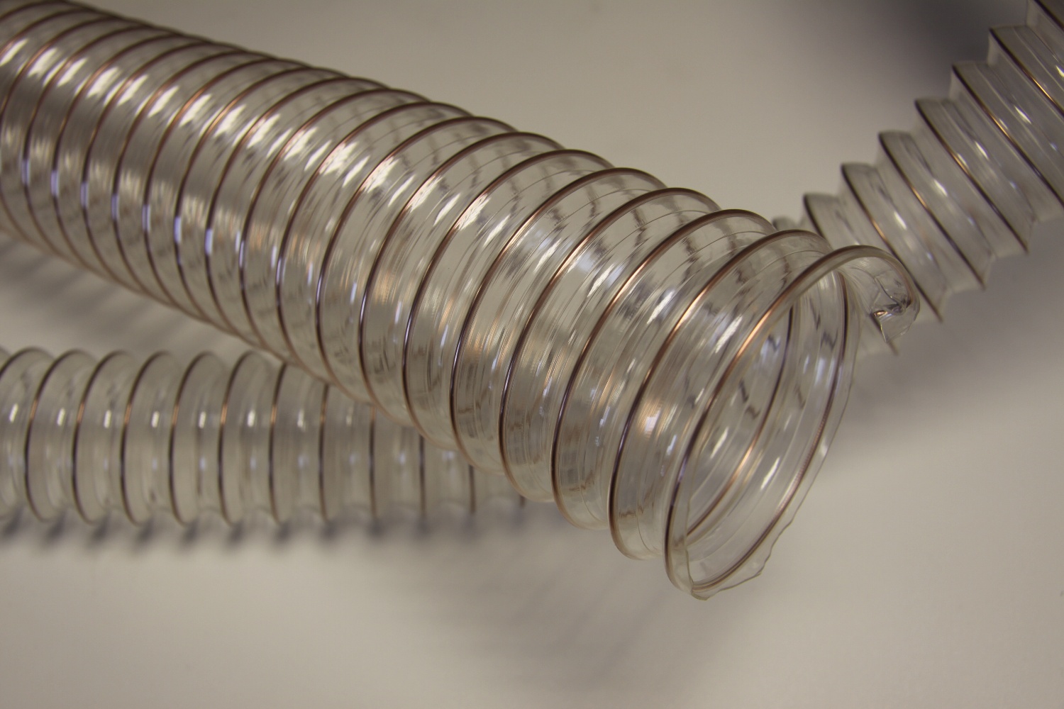 Шланг из термопластичного полиуретана, армированный стальной омедненной спиралью. Внутренняя поверхность гладкая. Высокая механическая прочность. Шланг легок и гибок. Устойчив к абразивному износу, маслам и ультрафиолетовому излучению.