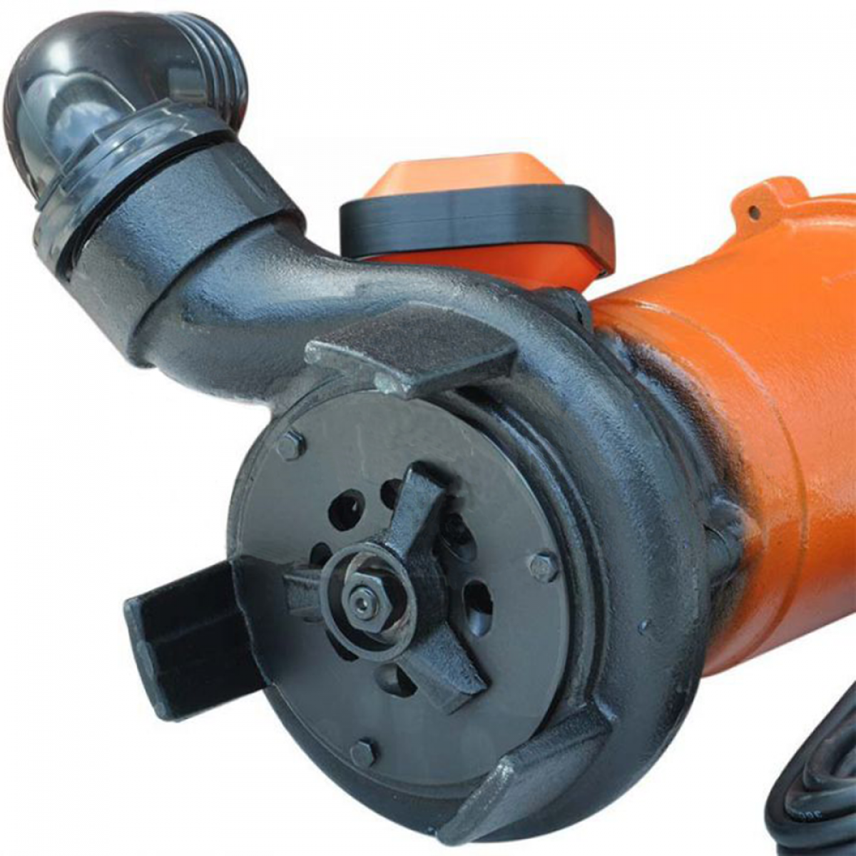 Наличие крепкой металлической ручки в верхней части насоса для удобной транспортировки и монтажа установки, нож-измельчитель предварительно разбивает крупные твердые частицы до размеров, пригодных для входа в насосную часть: