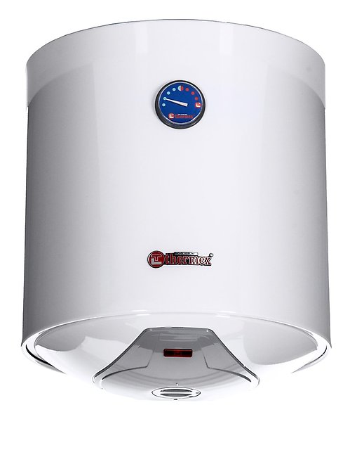 Настенный, вертикального монтажа, с нижним (боковым) подводом воды электрический нагреватель накопительного типа THERMEX ER 100 V имеет цилиндрический корпус с баком на 100 л и может быстро подогреть воду до максимальных +75 С. Нагревательный элемент с нанесением ионов серебра на 1.5 кВт находится в нижней части бака. Запитывается от однофазной переменной сети 220 В/ 50 Гц.