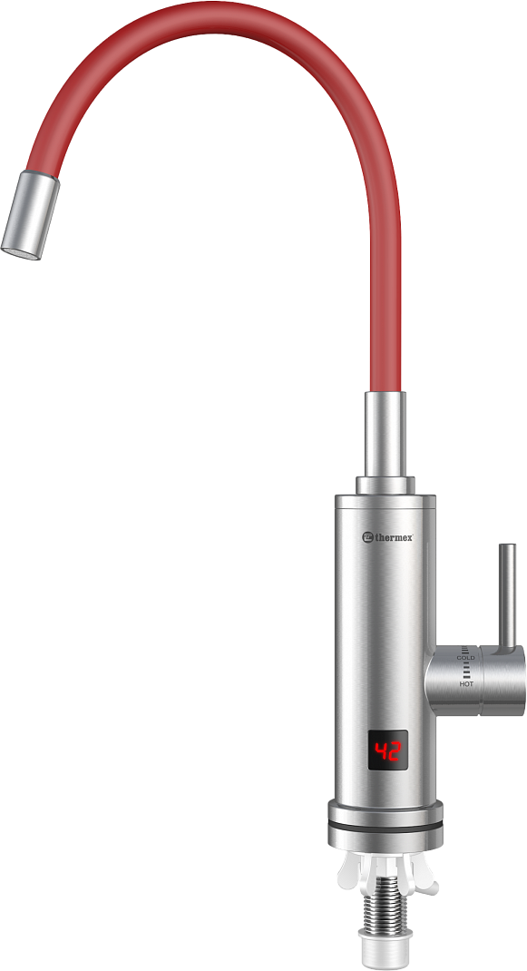 Проточный водонагреватель Thermex Ruby 3000 моментального нагрева - легко устанавливается вместо кухонного смесителя, подключается к стандартной розетке, напор и регулировка температуры настраивается механическим регулятором (как у стандартного смесителя), производительность 1,2-1,7 л/мин, моментальная подача горячей воды при открытии крана.